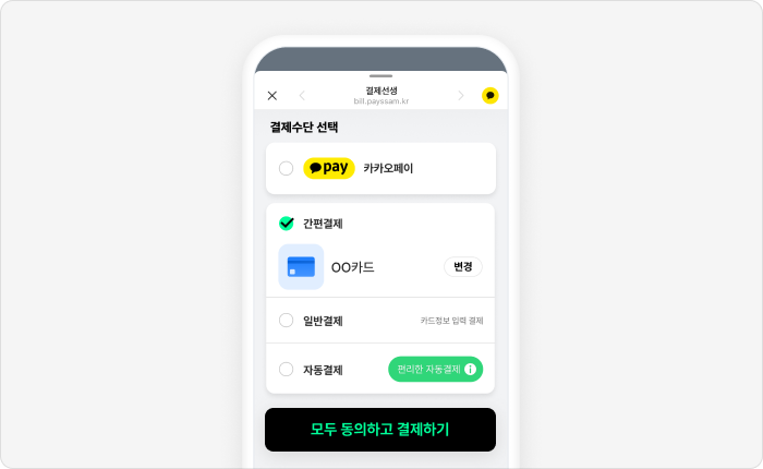 카드를 한 번만 등록하면 청구서에 접속하지 않고 정기적으로 결제할 수 있어요.