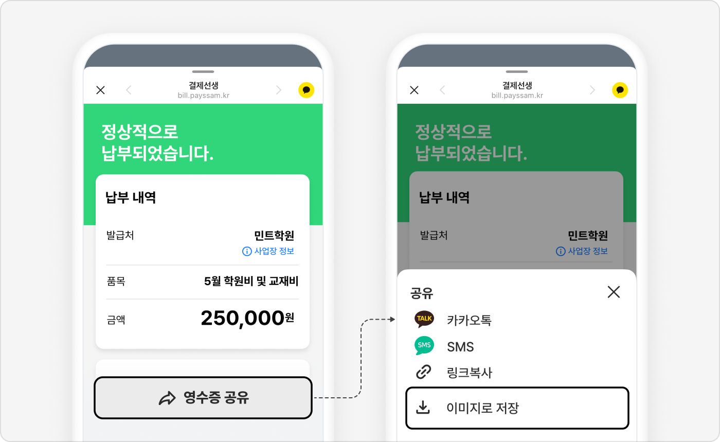 청구서 결제 완료 - 결제된 청구서 [영수증 공유] - [이미지로 저장]