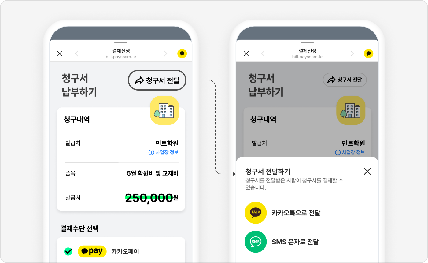 청구서를 타인에게 공유하여 결제 요청하세요.